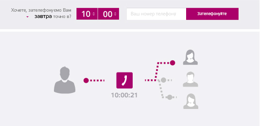 Клієнт залишає свій номер телефону і зручний час для дзвінка (в рамках вашого робочого часу) Точно в зазначений час система дзвонить вільним співробітникам Перший співробітник, який зняв трубку, автоматично з'єднується з клієнтом