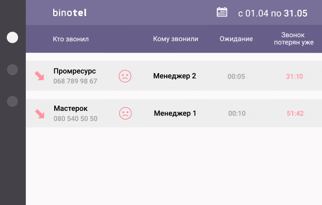 В нашем личном кабинете есть отдельная вкладка, куда попадают все пропущенные звонки. Они оттуда не исчезнут, пока менеджеры не перезвонят.